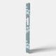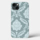 A vintage style decorative damask off-set surface pattern influenced by rococo classical design in duck egg blue color detail on a teal background.