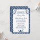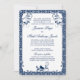 O texto sobre este modelo de rococco arabesco ou barroco, azul-marinho floral e branco, de cantos arredondados, é perfeitamente personalizável. Para alterá-lo, use a opção personalizar. Para alterações mais abrangentes no convite, incluindo alterações na fonte, cor da fonte, tamanho da fonte ou posicionamento do texto, use a opção personalizar. Este design de convite para casamento do estilo rococó barroco é adequado para um casamento no primavera ou verão. Embora atualmente personalizado para um casamento, esse convite também funcionaria bem para uma variedade de outras ocasiões especiais. Você decide. Tudo o que você precisa fazer é mudar o texto. Altere a aparência experimentando-a em qualquer um dos outros tipos de papel. Em algumas capas, isso mudará a cor de fundo. Isso também apresenta o tradicional convite de casamento. Entre em contato com o designer Wasootch se quiser que este convite seja feito em cores diferentes.