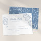 Adicione um toque de elegância do eterno aos seus convites de casamento com estes cartões RSVP do Casamento vintage. Adorados com ilustrações únicas de folha de rococó azul em um pano de fundo branco pristine, essas cartas adicionam instantaneamente um charme caprichoso à sua papelaria de casamento. Além disso, nossa modelo de texto de resposta é tão elegante quanto simples de adequar às suas necessidades - garantindo que suas placas RSVP sejam tão especiais quanto seu grande dia.