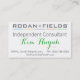Cartão de visita com logotipo de Rodan e de campo para um consultante independente. A parte traseira tem as mini instruções faciais.