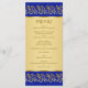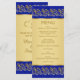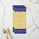 Ouro de folhas e corações unidos em um Cartão de Menu Real Azul de Casamento.