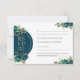Mostre o seu dia especial com este cartão de resposta com flores turquesa em aquarela e tons dourados. As fontes serif e script elegantes tornam este design perfeito para casamentos clássicos e atemporais, adequados para casamentos boho e rústicos.