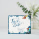 Romantic Blue Green Watercolor Foliage Butterfly Wedding Save the Date Card .