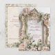 Featuring an ornate vintage-inspired frame adorned with delicate blush roses, sage green ribbon, and airy botanical florals, this design sets a refined and feminine tone for your upcoming event. The composition feels light, timeless, and gracefully detailed—perfect for garden parties, tea-themed showers, and spring celebrations.