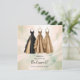 Propose to your bridesmaids with grace and style using our Romantic Chic Three Elegant Natural Bridesmaid Dresses Proposal Cards. These cards feature beautiful watercolor-effect illustrations of three long, elegant, and sophisticated bridesmaid dresses, each delicately hanging on a hanger. The dresses, designed with careful attention to detail, embody the elegance your bridesmaids deserve. The card’s background is adorned with a subtle floral pattern in soft browns and greens, adding a touch of natural refinement to the design.