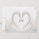 Os cisnes adoram as costas desses convites de casamento oferecendo uma estética romântica. A frente é simples e clássica em tons brancos e prateados escuros. Adicione seus monogramas. Excelente para casamentos e ocasiões especiais. Use a modelo para criar seu próprio convite romântico para o casamento de cisne.