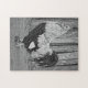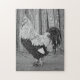 Roo, o salmão Fverolle, era um amor de um galo. Gostava de ser mimado e mantido, agarrado e bloqueado calmamente quando era o centro das atenções. Ele também se posou com frequência, o que o fez um sujeito de arte excelente. O design para essas quebra-cabeça é um desenho que fiz com canetas pretas e brancas em papel cinza.