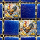 Rooster and Lemons Azulejo Style Blue Orange Cream