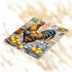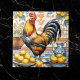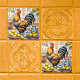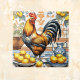 This ceramic tile depicts a mischievous orange and navy blue rooster that jumped up on a tiled counter to check out some plates of lemons. The vase, counter, and backsplash tile is similar to Mediterranean or Azulejo style kitchens for a classic, European look. If you or your recipient like vintage poultry or farmhouse chic scenes, this might be the right tile accent or gift. Contains #generativecontent that's been further customized with filters and other editing.