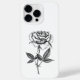 Rosa com caule e folhas desenhados à mão, preto e branco