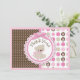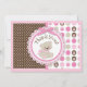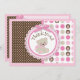 As bolinhas cor-de-rosa e marrons doces do impressão da pata com um urso de ursinho peluches com arcos 3D-look e cartões de agradecimentos das guarnições projetam.