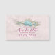 Um casamento salva a data do cartão magnético desenhado com uma foto de rosas azuis cercada por galhos e folhas e ricos. As bolhas também formam uma forma de coroa. Flores brancas e arcos azuis bonito e fita branca de legado também rodeiam os rosas. Colocado sobre um fundo de mármore rosa empoeirado.