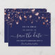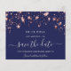 Uma moça e moda Salvem a data para uma doce festa de aniversário 16, 16. Um fundo azul marinho com estrelas rosa douradas. O texto: Salvar a Data é gravado com um script de estilo com letra de tendência grande. Letras coloridas de cinza clara.