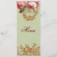 Menu belamente romântico e inegavelmente elegante usando meu design Blenheim Rosa. A Design apresenta duas lindas rosas rosa-safra em flor de cheio, sobre o meu ornamentado delicado desenho de flores e folhagem, rosas e bruxelas, e depois colocadas sobre um sonhador fundo Verde Sage. Perfeito para um Casamento, Noivado, Aniversário ou Festa de Janto Summer © Wickely Lovely.