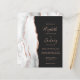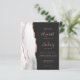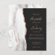 A borda esquerda deste elegante e moderno convite de casamento apresenta uma cor branca e cinza de água, borda agitada com falso brilho de ouro rosa. O texto personalizável combina a letra rosa-rosa, a letra copperplate e a letra itálica em um fundo preto de ardósia escura. O lado inverso apresenta um design agate correspondente.