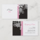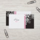 Cartões de visitas preto e branco à moda com um acento cor-de-rosa para fazer uma grande impressão. O acento vermelho com flores brancas e redemoinhos faz os cartões de visitas do desenhista elegantes e originais.