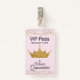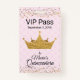 Crachá acessório do partido chique de Quinceañera feito em um rosa no teste padrão cor-de-rosa, com uma coroa do ouro e os gráficos do brilho do ouro, ao longo da parte superior e da parte inferior. O texto preto está pronto para personalizar para o dia grande da sua filha. Os produtos de harmonização estão disponíveis.