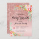 Rosa, convite para o bebê cor-de-rosa, Dourado, com uma bela brilha dourada e um confete dourado.