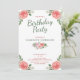 Celebre seu aniversário em estilo com este elegante convite de aniversário floral, com um design de rosa bonito, cor-de-rosa e verde delicados. Adequado para amantes de flores de todas as idades.