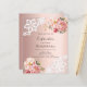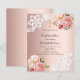 Um convite de confirmação elegante. Um fundo rosa de gradiente dourado decorado com florais, rosas, rendas e uma cruz de ouro cor-de-rosa e rosa. Personalize e adicione um nome e detalhes. 1 folha = 1 convite impresso de borda a borda.