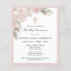 O convite da Primeira Comunhão Elegante e feminina apresenta belas rosas cor-de-rosa aninhadas em folhagem verde macia. As rosas e folhas têm detalhes mais brilhantes para adicionar um toque de brilho. Todo o texto é editável para que você possa usá-lo para qualquer tipo de cerimônia religiosa, Batismo, Cristo, Dedicação ou Confirmação.