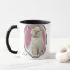 Uma caneca branca e preta com um design cor-de-rosa do ragdoll