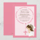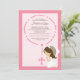 Comece seu evento fora do direito com nosso convite do comunhão santamente do rosário bonito & doce primeiro. O convite caracteriza a miçanga de um rosário do rosa com a menina triguenha do cabelo que recebe o comunhão ajustado em uma luz - pique o fundo com uma beira cor-de-rosa escura. Fácil personalizar, apenas adicione sua foto e a informação de evento e você são todos ajustam-se para ir. design do ©Zenware