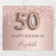 Elegante, clássico, glamouroso e giro para a 50ª festa de aniversário. Rosa ouro e cor-de-rosa-claro, fundo gradiente. Decorado com rosa dourado, brilho rosado, pintura pingando. Personalize e adicione um nome. Com o texto: Parabéns. O texto é escrito com um moderno e escuro estilo escrito à mão, com rosa. O número 50 é escrito com uma fonte no estilo do balão.