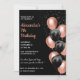 Rosa de 7 de aniversário convite Balão Negro Cor-de-rosa brilha moderna caligrafia tipografia milestone feminina elegante clássico