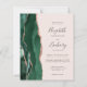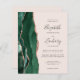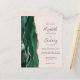 A borda esquerda deste elegante convite de casamento moderno apresenta uma esmeralda verde aquarela agate borda aparada com falsa rosa dourada. O texto personalizável combina a escrita manual de cinzas de carvão, fontes em copperplate e itálico em um fundo cor-de-rosa pincelado. O verso fornece espaço para detalhes do casamento em um fundo sólido de blush, junto com um código QR que os convidados podem digitalizar para visitar seu site e RSVP, o que economiza o custo de imprimir e enviar cartas RSVP separadas.
