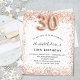 Para um aniversário de 30 anos elegante. Um fundo branco. Decorado com rosa dourado, cintilação falsa rosa, faíscas. Personalize e adicione um nome e detalhes da festa. O nome é escrito com um script de estilo manuscrito, número 30 com fontes de estilo de balão.
