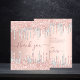 Um cartões de agradecimentos feminino e elegante. Uma cor rosa dourada, cor-de-rosa e metálica de aparência falsa. Com ouro rosa e brilho fino prateado pingando, pintura pingando aparência. Na frente, um grande e escuro, rosa dourado, escrita à mão, colorida, e o texto: Obrigado. Voltar: Personalize e adicione seu nome e nota de agradecimento. O nome é escrito com um moderno estilo escrito à mão com traços. Para manter as hastes, exclua apenas o nome da amostra, deixe os espaços ou emoji na frente e depois do nome.