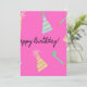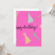 Feliz padrão rosa de fundo de aniversário com chapéus de festa.
