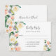 Um cartão RSVP elegante e romântico para um casamento com modelos para resposta por data e nomes. Um fundo branco chic. Decorados com flores, florais, de cor aquosa - rosas e peônias em branco, creme, coral e pêssego. O título Resposta Rápida é escrito com um grande script de estilo escrito à mão moderno. Florais e modelos para seus nomes e a data do casamento. Fundo branco. Este cartão também está disponível em nossa loja com fundo de coral no verso.