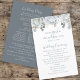 Uma simples folha de papel do programa de cerimônia de casamento modelo. programa azul empoeirado de cerimônia de casamento, elegante layout de serviço, verde botânico floral aquícola, com cerimônia religiosa estilo design da igreja, rosa romântico de jardim, flores, letra de roteiro de caligrafia na moda, texto tipográfico caprichoso, flor de festa de casamento, prata azul minimalista simples, verde-verão primavera