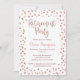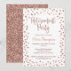 Convite de festas de aposentadoria com configuração de brilho rosa dourado.