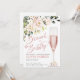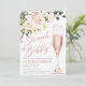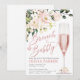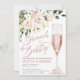 Chá de panela apresenta flores cor-de-rosa rosa, vidro champanhe e inscrições brilhantes. Esta design é ideal para alguém ter um chá de brunch.