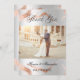Um casamento moderno Obrigado, cartão com fotos. Um fundo com aspecto fino prateado decorado com veias de mármore rosa. Personalize e adicione sua foto e obrigado nota. Voltar: adicione o URL do site de casamento ao código QR para mais fotos.