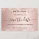 A Save the Date card for a 30 (or any age) festa de aniversário (Salvar a placa de data para uma (ou qualquer idade). Um fundo metálico rosa dourado com aspecto decorado com poeira falsa brilhante. Personalize e adicione uma data e nome/idade. O texto: Salvar a Data é gravado com um script de estilo com letra de tendência grande com alternâncias.