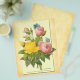 Reprodução antiga de rosas cor-de-rosa e amarelas de trabalho de arte botânico de safra pelo famoso artista Pierre Redoute com borboletas azuis num fundo falso de pergaminho. Clique em Personalizar para adicionar seu nome ou mensagem.