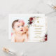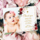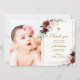 Marsala Rosa e Dourado Barato de quadros com anúncio impresso para bebê Menina convite para Batismo. Este bonito design tem uma aquarela marsala e flores rosa-rosa com moldura de ouro. O verso tem uma cruz dourada com flores de aquarela ou usa o espaço para adicionar texto e fotos adicionais. Clique em Personalizar para escolher qualquer cor de fundo e editar as fontes e cores do texto.