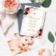 Marsala Rosa e Dourado Barato de quadros com anúncio impresso para bebê Menina convite para Batismo. Este bonito design tem uma aquarela marsala e flores rosa-rosa com moldura de ouro. O verso tem uma cruz dourada com flores de aquarela ou usa o espaço para adicionar texto e fotos adicionais. Clique em Personalizar para escolher qualquer cor de fundo e editar as fontes e cores do texto.