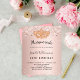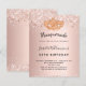 Para um Mascarada elegante, para um aniversário de 50 anos (ou qualquer idade). Um fundo de aparência metálica fino rosa dourado. Decorado com poeira falsa e uma máscara de mascarada do ouro. Personalize e adicione um nome, idade e detalhes da festa. O nome é escrito com um script de estilo manuscrito