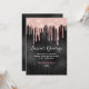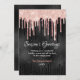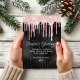 Rosa chic blush, monograma de gotas de brilho preto Cartão de saudação de Natal de ano novo. Um cartão de Natal bonito e brilhante. Perfeito por enviar para a família ou amigos durante o feriado. Para torná-lo mais especial, ele é embelezado com belos brilhos falsos. Este design também pode ser transferido para qualquer produto do zazzle. Você pode personalizá-lo com seu próprio texto e informações. NOTA: Estes são gráficos impressos - sem brilho real, joias ou peças levantadas.