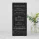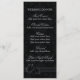 Menu janto casamento tema damasco preto com decoração rosa de local preto com campos de texto personalizados e monogramas no verso. Você pode personalizar todos os campos de texto.