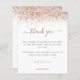 Um valor para o alternativo do ORÇAMENTO em tamanho menor de 4,5 x 5,6" de semirbrilho de 110 lbs, que é de espessura semelhante a um cartão postal (no entanto, não é adequado para uso como cartão postal). POR FAVOR, OBSERVE QUE HÁ UM convite por folha. Rosa Dourada Glitter Qualquer Festa de aniversário De Idade Obrigado. Um toque de brilho para a sua obrigado de festa de aniversário, com uma falsa borda brilhante em ouro rosa, no topo, e Obrigado está em um roteiro elegante com baloiços. Personalize facilmente o texto para seus próprios detalhes.