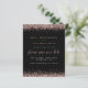 Um valor para o alternativo do ORÇAMENTO em tamanho menor de 4,5 x 5,6" de semirbrilho de 110 lbs, que é de espessura semelhante a um cartão postal (no entanto, não é adequado para uso como cartão postal). POR FAVOR, OBSERVE QUE HÁ UM convite por folha. Rosa Dourada Glitter Borders Script Wedding Black Save The Date. Rosa Dourada faux glitter borda as bordas superior e inferior em cada lado e um script elegante de conjunto para Salvar nossa Data. Personalize facilmente o resto do texto para seus detalhes.