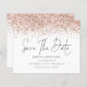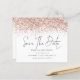 Um valor para o alternativo do ORÇAMENTO em tamanho menor de 4,5 x 5,6" de semirbrilho de 110 lbs, que é de espessura semelhante a um cartão postal (no entanto, não é adequado para uso como cartão postal). POR FAVOR, NOTE que existe UM por folha. Rosa De Orçamento Dourado Casamento De Literatura Salve A Data. Um toque de brilho com bordas falsas de brilho em ambos os lados em ouro de rosa. Salvar A data está em um script de conjunto moderno.O resto do texto que você pode personalizar facilmente.