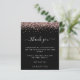 Rosa Glitter Photo Hen Party Black Obrigado. Um alternativo de 4,5 pol x 5,6 pol com preço inferior. Disponível em um STOCK DE CARTÃO SEMI-GLOSS 110 lb, que é a opção padrão (mais espesso para convites), OU um STOCK de PAPEL THINNER FINISH 80 lb FINISH (ideal para gabinetes). Os envelopes são um extra opcional e são ligeiramente maiores que o tamanho da placa. Uma borda de rosa dourada faux glitter está no topo, e Obrigado está em um script elegante no estilo de escrita manual, em branco, sobre um fundo preto clássico. Personalize facilmente o texto para seus próprios detalhes. Na parte de trás troque sua foto favorita do seu chá de orientação para retratos.