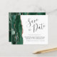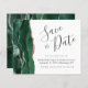Este elegante orçamento salve o cartão de data apresenta um emerald green watercolor borda agate, aparado com falso rosa dourado. O texto personalizável combina o script de escrita manual de cinzas de carvão, o copperplate e as fontes itálicas em um fundo branco. O verso apresenta um design emerald verde e rosa dourado.